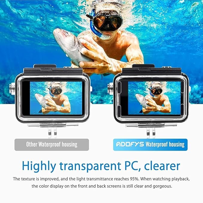 • 【164FT/50M WATERPROOF】This waterproof housing case with upgraded waterproof sealing ring and tight buckle that help avoid water leakage effectively. You can use your camera to record underwater activity deep to 50 meters/164FT without worrying about leaks, and it also won’t damage the shooting effect, clear and vivid.